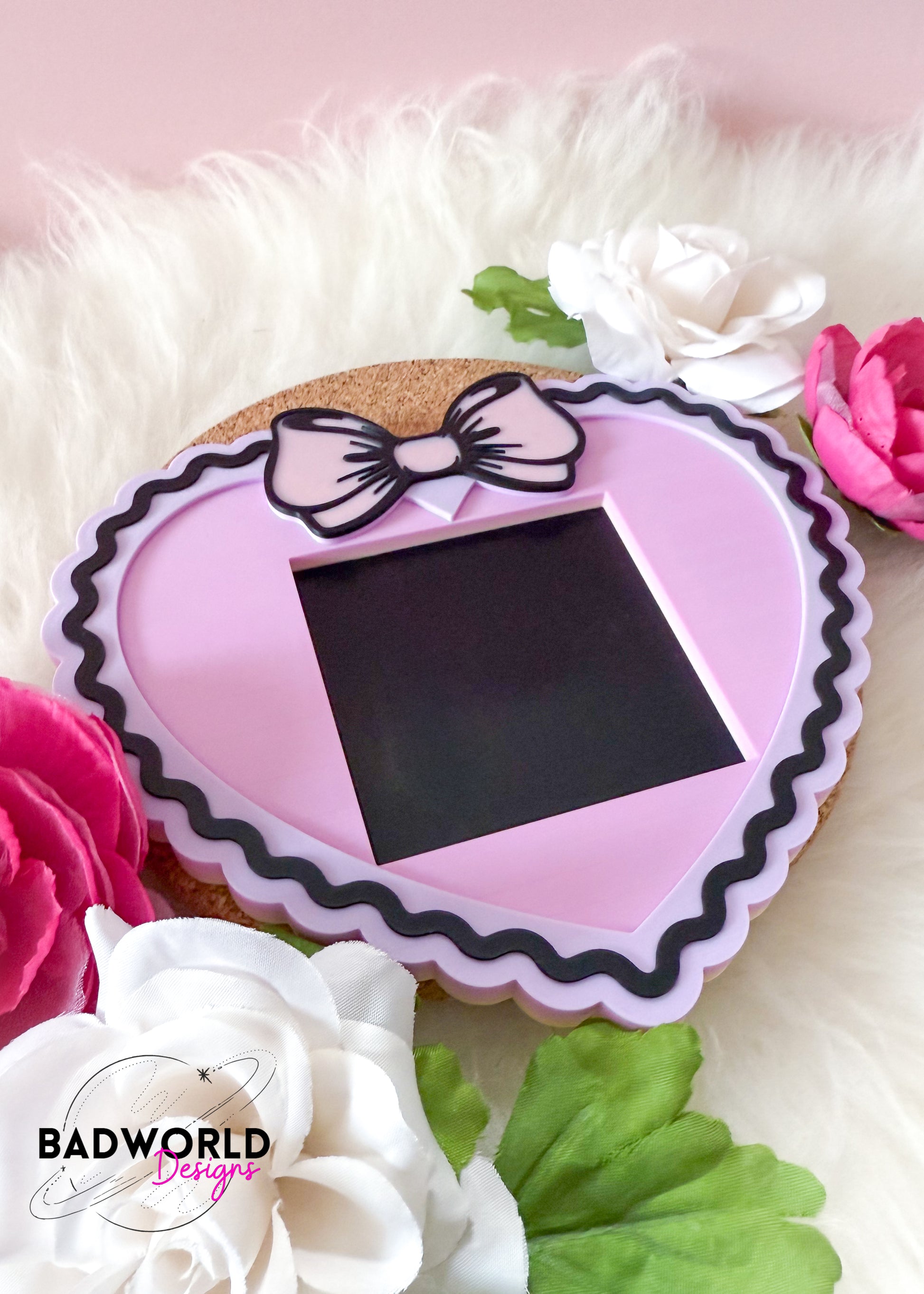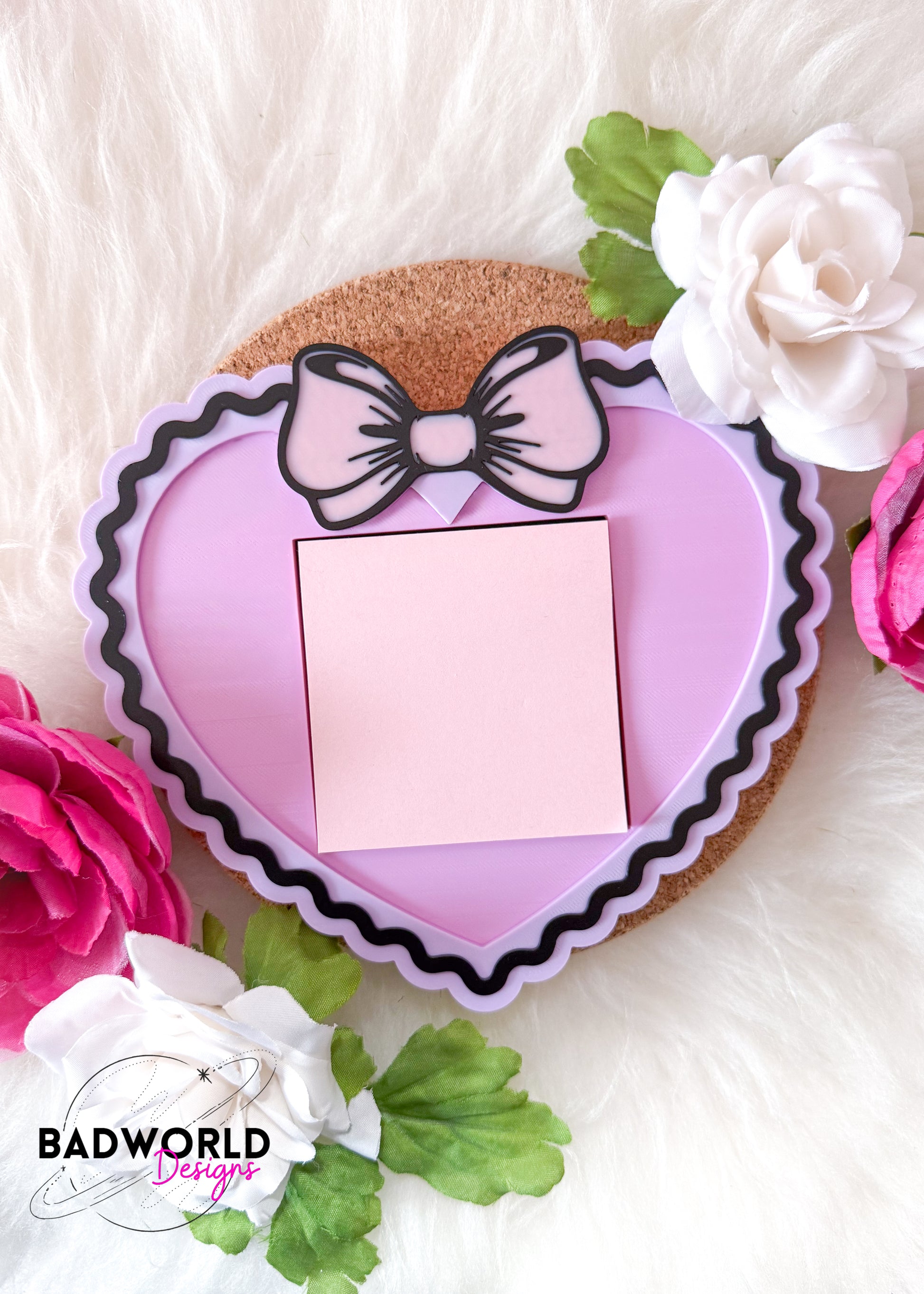 Elevate your desk aesthetic with our Coquette Heart Sticky Note Holder! Made from high quality filament, this holder features a coquette bow and scalloped heart ready to take on the day. Keep your notes organized and add a touch of whimsy to your workspace.