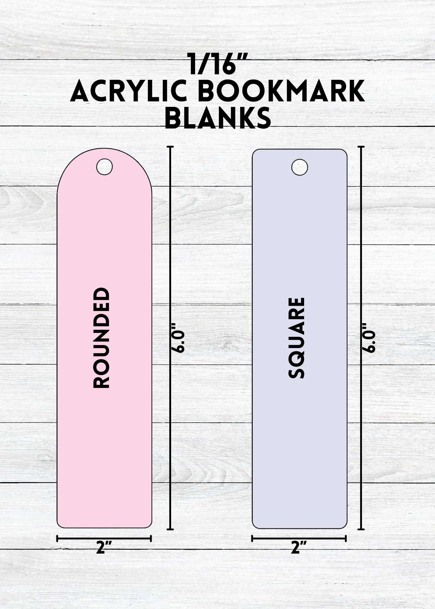 1/16 Thick (1.57mm) acrylic to customize for yourself or for your small shop. Select from a rounded top or standard square shape. Each piece is smooth and identical on both front and back, which makes them reversible. Perfect for resin designs, permanent vinyl or UVDTF decals!