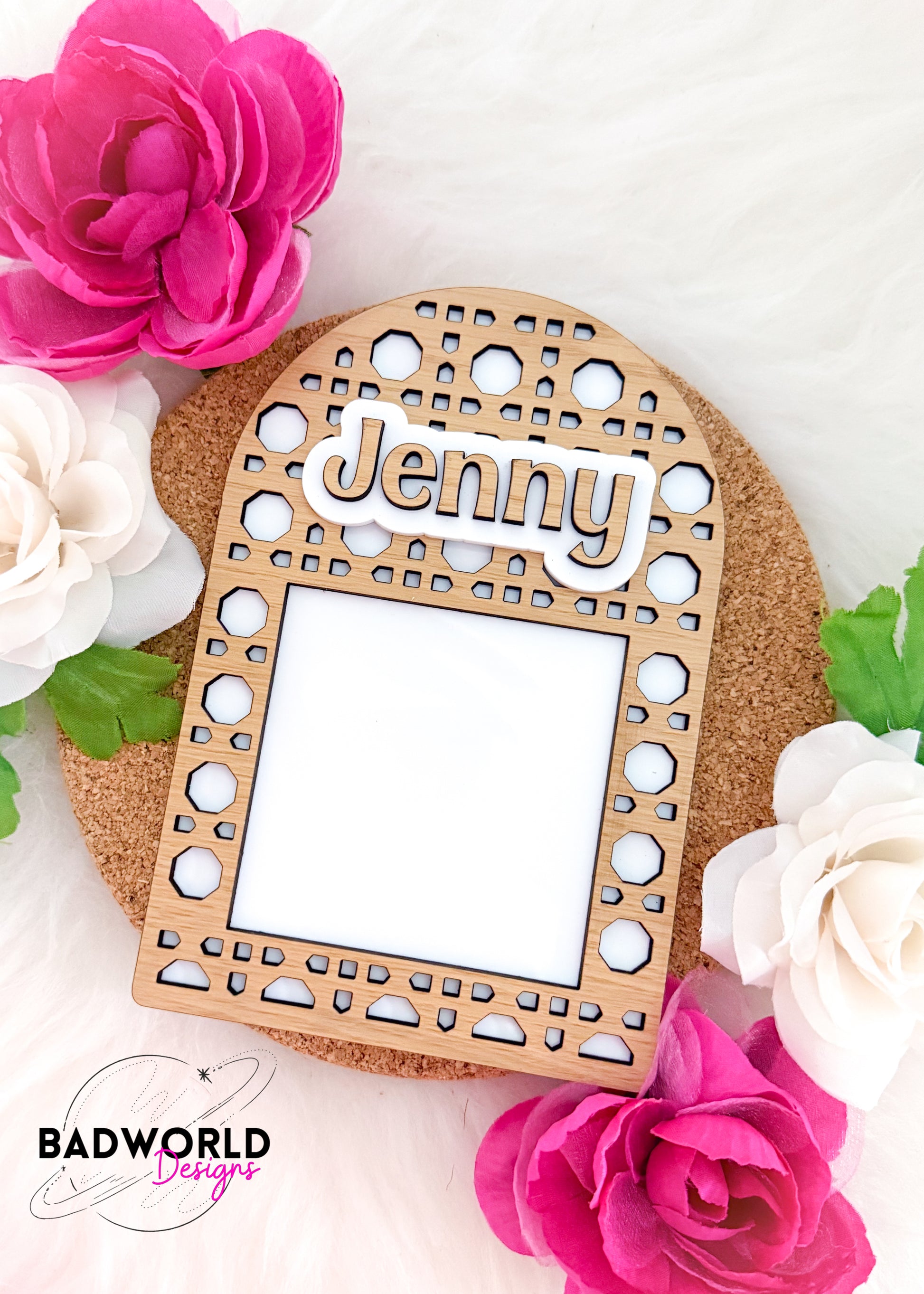 Elevate your desk aesthetic with our Customizable Rattan Sticky Note Holder! Made from quality wood, this holder features a beautiful rattan, arched design and is customizable with your name. Keep your notes organized and add a touch of nature to your workspace.