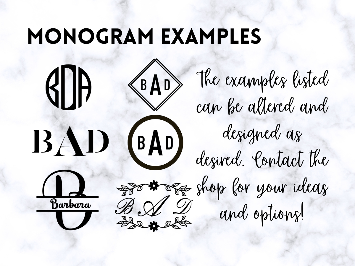 - Add a personalized message, name or monogram to this beautiful design! Use the font chart provided in images to select your desired font and add it to the space provided, along with the message, name or initials for the monogram. (Ex. Soulmate/Barbara)