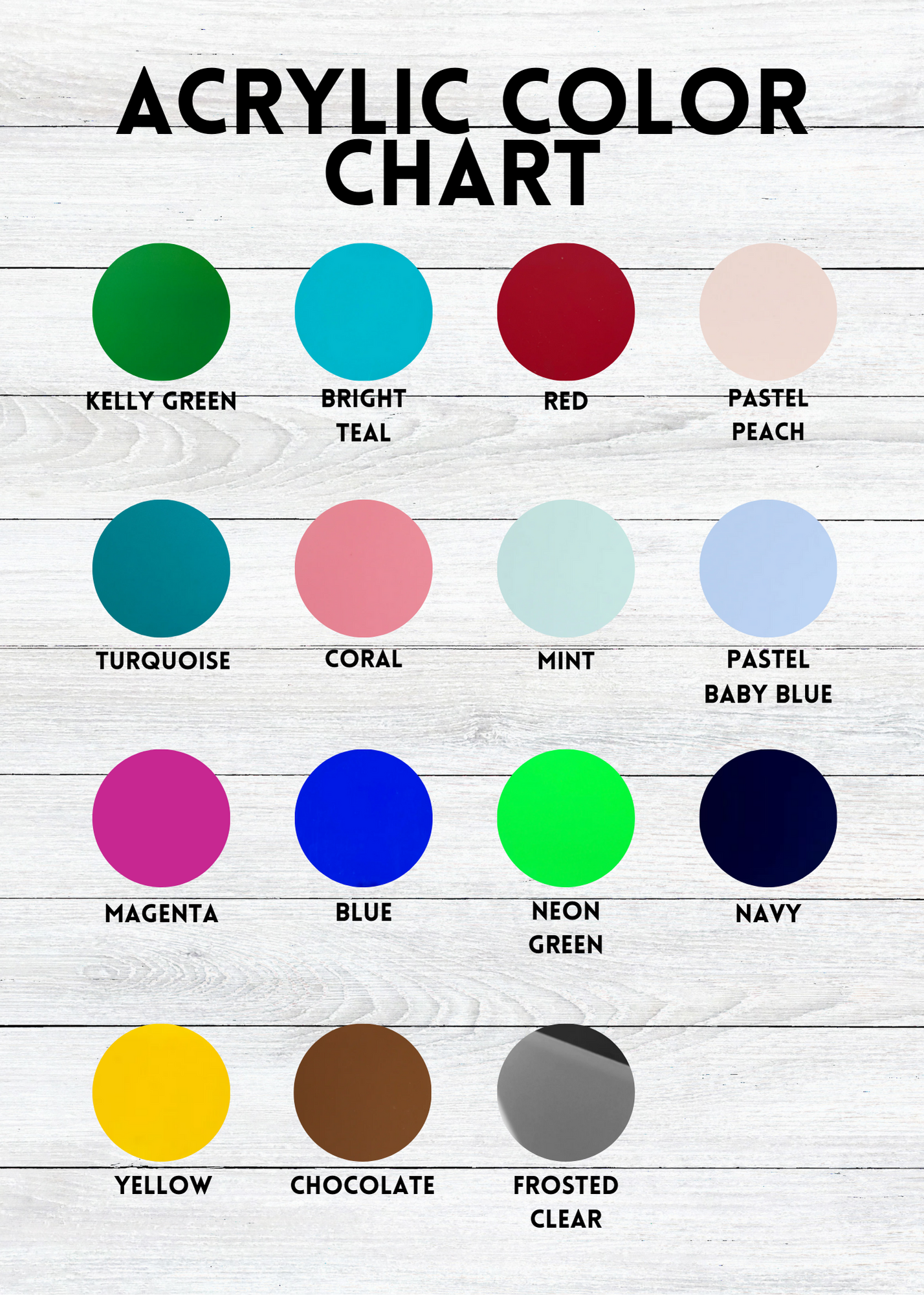 - Use the color chart and space provided to select desired color