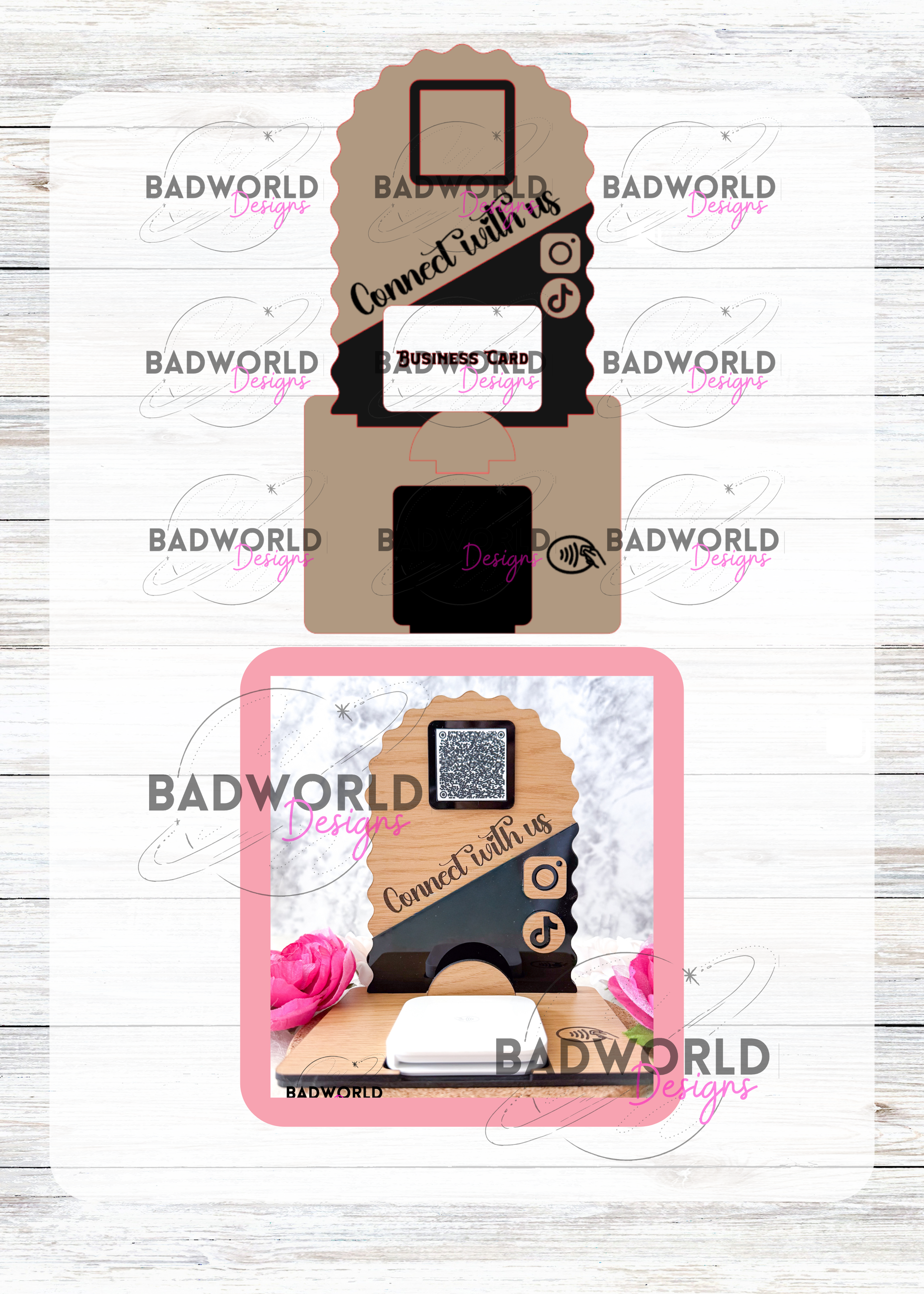 Display your business in style with this charming scalloped market sign! Perfect for craft fairs, pop-up shops, or desktop displays, this laser-cut design features a sturdy base that keeps everything upright and professional. The built-in business card slot lets customers grab your contact info on the spot, while an integrated QR code drives traffic straight to your website or social media. This digital file is ready to cut on your laser machine—customize colors and materials to match your brand's vibe!